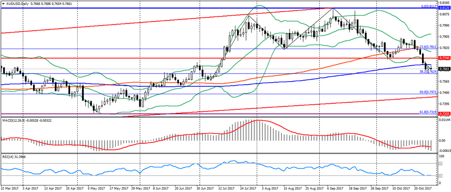 В случае развития коррекции и отбития пары от отметки 0.7630 возможен тест сопротивления 0.7690-0.7700 и 0.7740. Учитывая существующую нисходящую динамику, дальнейший рост пары будет ограничен. В свою очередь, закрепление пары ниже 0.7630 откроет дорогу продавцам к уровням поддержки: 0.7530 и 0.7470 (Фибо. 50.0).