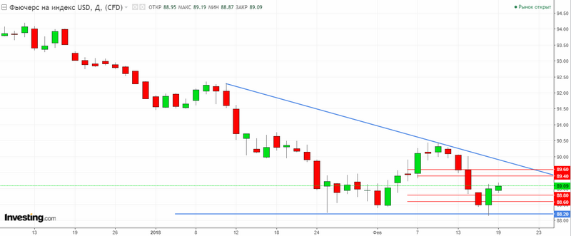 График индекса доллара США D1. Текущая цена – 89.00.