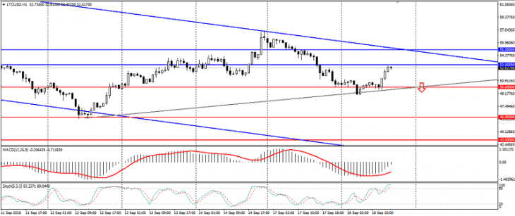 График LTC/USD. Текущая цена – 52.500