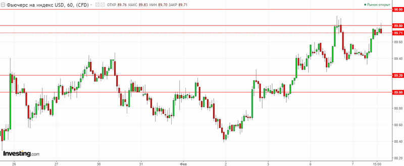 График индекса доллара США. Текущая цена – 89.70.