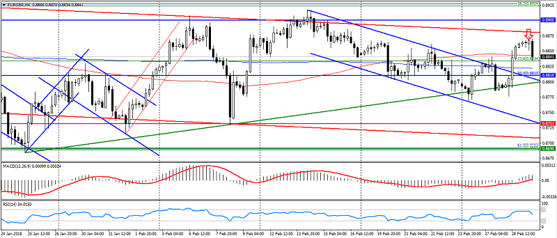График EUR/GBP H4. Текущая цена – 0.8840.