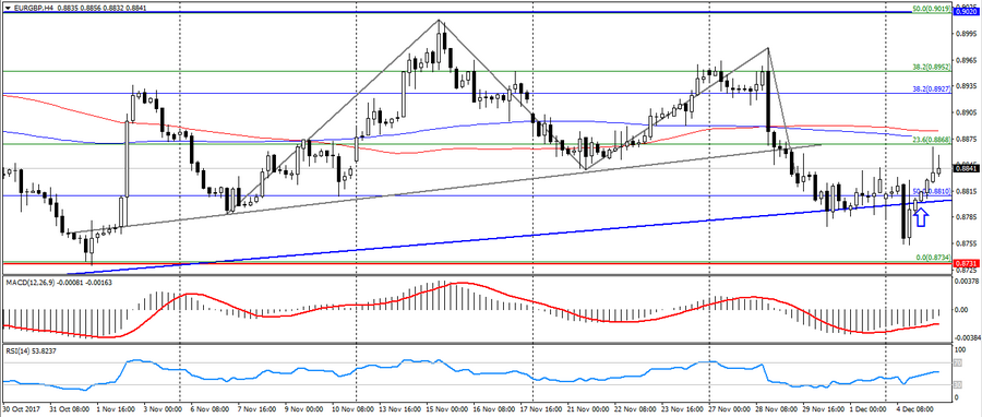 График EUR/GBP H4. Текущая цена – 0.8840.