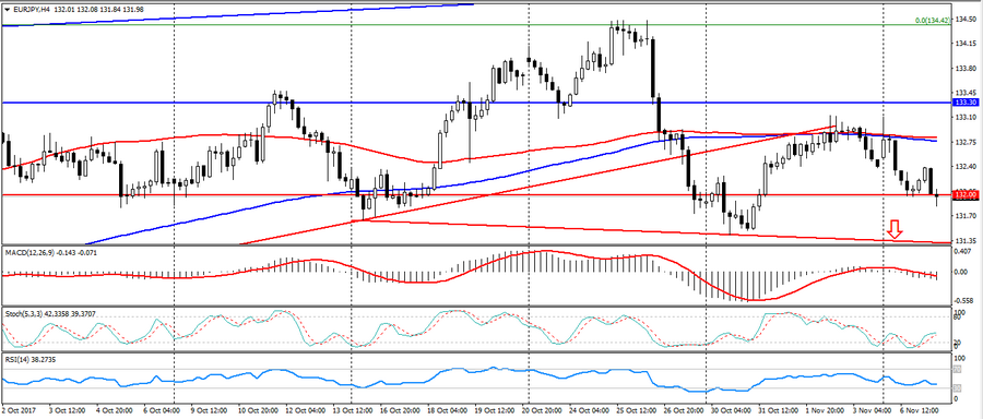 Основная поддержка данной пары расположилась в зоне 131.60-30, где проходит уровень шеи. Пока пара EUR/JPY остаётся в зоне заметной перепроданности, что замедлит дальнейшее формирование фигуры и теста основной поддержки. Но, несмотря на это, общий нисходящий тренд по паре продолжает сохраняться, чему также способствуют фундаментальные факторы.