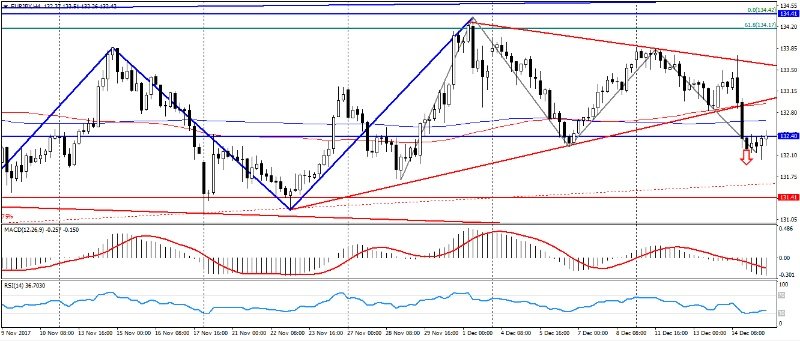 Как упоминалось ранее в прогнозе по кроссу EUR/JPY, уровень 132.40-20 выступает значимой поддержкой, который ограничивает отработку фигуры «двойная вершина».