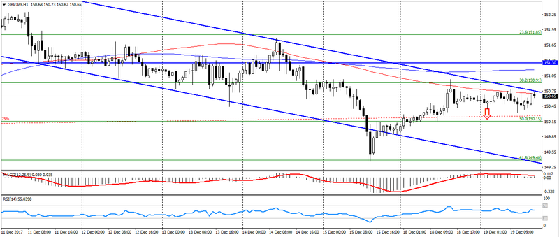 Для подтверждения сохранения нисходящего тренда необходимо дождаться выхода пары с флэта, вниз с обновлением дневного минимума. Сопротивлением выступают отметки: 150.80-90 и 151.20-30, пробитие которых поставит под сомнение сохранность нисходящего тренда.