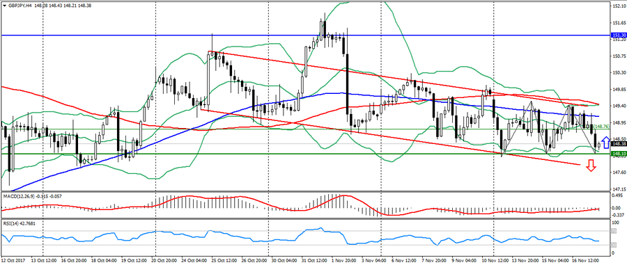Ранее пара GBP/JPY себя хорошо зарекомендовала в торговле в боковом канале, полностью оправдав предыдущий прогноз. Теперь данный кросс снова приблизился к значимому уровню поддержки 148.10, от которого возможно отбитие с тестом сопротивления 148.70 и 149.30.