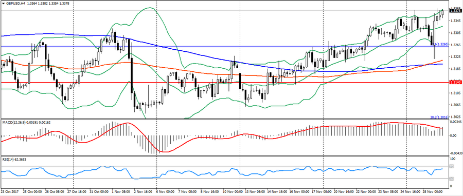 Британский фунт продолжает торговаться с укреплением после стремительного роста вчера на данных о финансовом урегулировании Brexit. Так, стоимость развода Великобритании и ЕС будет составлять от 45 млрд. фунтов до 55 млрд. фунтов. Данная новость указала на значительное продвижение переговоров между ЕС и Великобританией, что вызвало повсеместное укрепление британского фунта.
