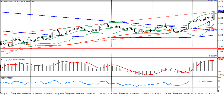Пара USD/CAD существенно ускорила рост на оптимистических данных по продаже нового жилья в США, которые показали значительный рост в октябре. Дополнительном фактором укрепления американца против канадца послужило сохранение Банком Канады ключевой процентной ставки на прежнем уровне, а тон протокола остаётся весьма мягким.