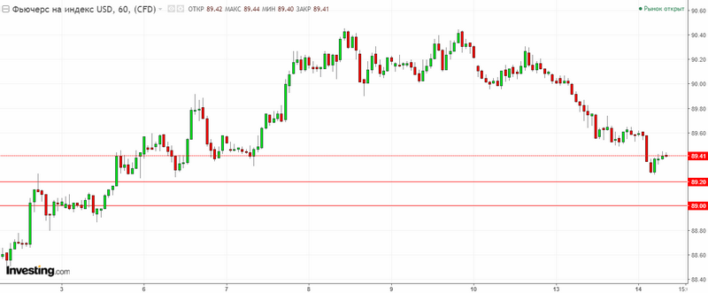 Индекс доллара США торгуется возле уровня 89.40-50, который отвечает значимому уровню поддержки, и пробитие которого откроет дорогу к уровням 89.20 и 89.00.