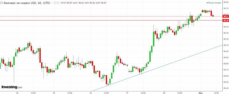График индекса доллара США. Текущая цена – 90.60.