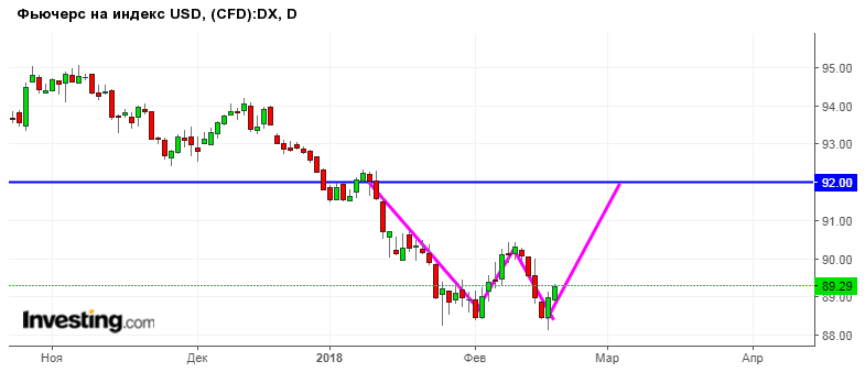 Рис. График индекса доллара США. Текущая цена DXY – 89.29.