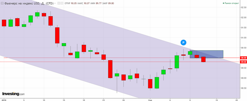 Индекс доллара США, на фоне восстановления оптимизма, зажат в нисходящем тренде, а пробитие поддержки 90.00 указывает на возможность дальнейшего снижения. При этом зона от 90.00 до 90.40 продолжает оставаться разворотной.