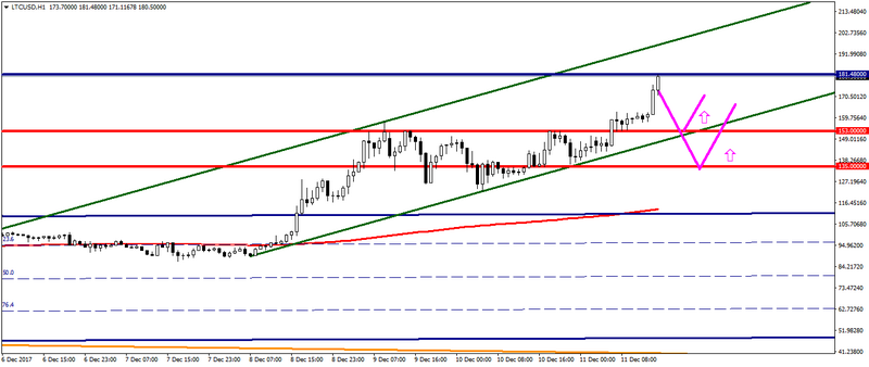 Технический анализ: Цена LiteCoin движется в быстро растущем восходящем канале на Н1, в случае коррекции цены, основные уровни поддержки рассматриваю у отметок $153.00; $135.00.