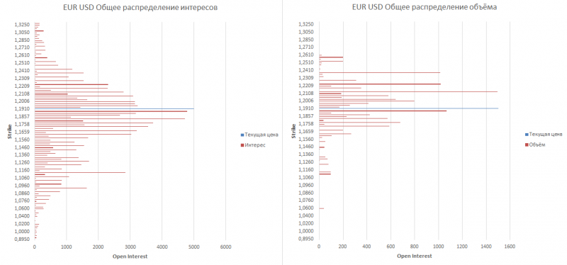 Ближайшее значимое сопротивление расположилось на уровнях: 1,1955 и 1,2006, чему соответствует большой открытый интерес. Пробитие данных уровней открывает дорогу к уровням сопротивления: 1,2053 и 1,2102.