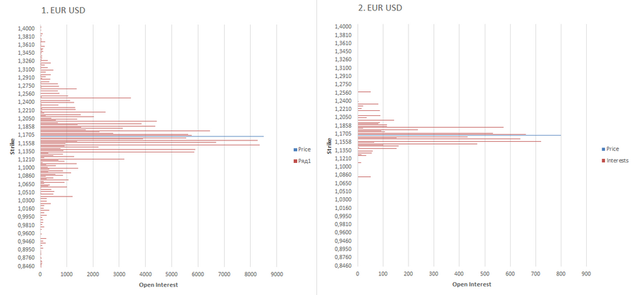 EUR USD Общее распределение интересов (1) и объёмов (2)