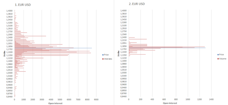 EUR USD Общее распределение интересов (1) и объёмов (2)