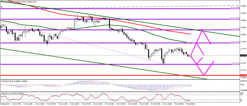 Технический анализ: В краткосрочном периоде пара AUD/USD сохраняет нисходящую динамику в краткосрочном периоде и на данный момент торгуется в канале между уровнями 23,6 (С:0,7791) и 0,0 (С0,7732) по Фибоначчи на Н1.
