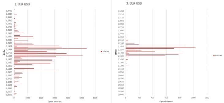 EUR USD Общее распределение интересов (1) и объёмов (2)