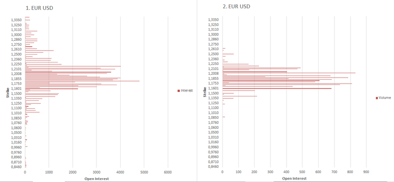 EUR USD Общее распределение интересов (1) и объёмов (2)