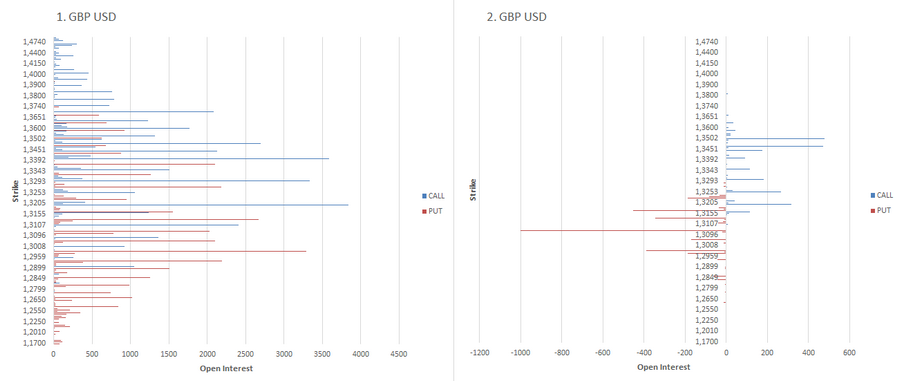 GBP USD Общее распределение интересов (1) и объёмов (2)