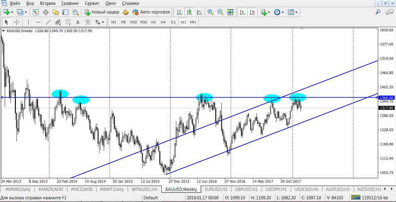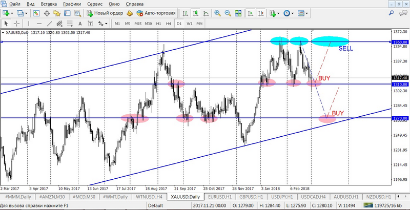 В идеале просматривается необходимость повторного касания поддержки в зоне 1290.0 USD, для последующего пробоя сопротивления на 1360.0 USD. Но, в любом случае, это не вопрос нескольких ближайших месяцев.