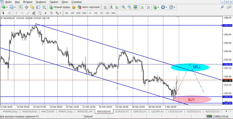 Заканчиваем торговую неделю на «золотой» ноте. Торговые рекомендации по фьючерсам XAUUSD (Gold) на Пятницу, 02 марта 2018 г.