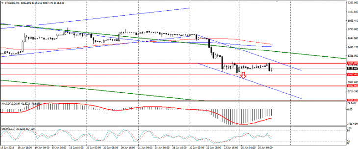 As a result, the pair BTC / USD, as expected earlier, was under pressure, thereby forming a downtrend, which is limited to the support level of 6000,000. Significant resistance, the update of which will call into question the safety of the downtrend, are the marks: 6200.000 and 6400.000. Goals remain the same: 5800.000 and 5500.000.