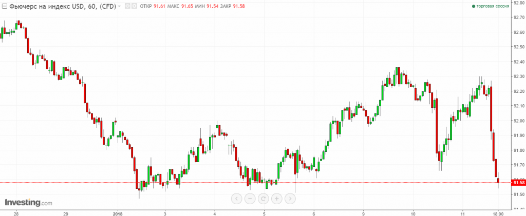 Графік індексу долара США. Поточна ціна – 91.60.