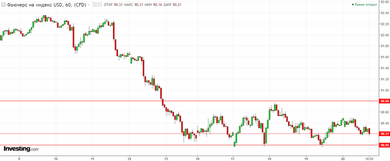 Індекс долара США і ринок в цілому продовжує обмежуватися існуючим бічним трендом, який, ймовірно, збережеться в найближчі дні. Оскільки явних причин для виходу американця з каналу немає, а основний конкурент – євро також залишається у флеті, що викликано перекупленістю і збереженням ризиків по єврозоні.