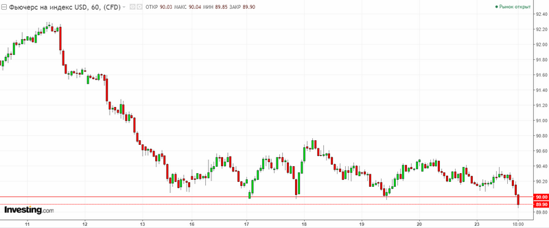 Індекс долара США залишається під значним тиском без явних на те причин. Тому можлива швидка корекція, також закріплення американця нижче позначки 90.00 вказує на відновлення низхідного тренда.