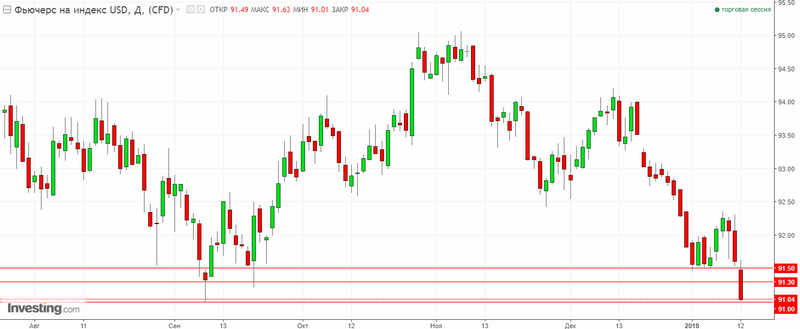 Основне ослаблення американця припало на європейські валюти: євро й фунт, що обумовлено фундаментальними факторами. Настільки значне зниження індексу долара США в майбутньому може вказувати на можливість подальшого зниження американця й, як результат, вказувати на відновлення загального спадного тренда по американцеві, який простежується з початку 2017 року.