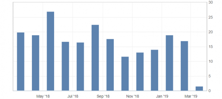 Торговий баланс єврозони в січні сповільнилося менш значними темпами, ніж очікувалося, показавши значне зниження до мінімумів останніх двох років. Це вказало на збереження низхідної динаміки по торговому балансу єврозони, але дані виявилися менш негативними ніж очікувалося, що розглядається як позитивні дані.