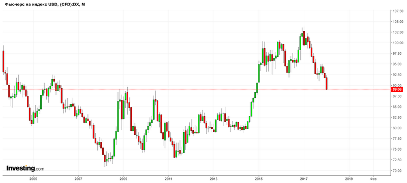 Індекс долара США знизився до позначки 89,04, що є мінімальною позначкою за останні три роки.