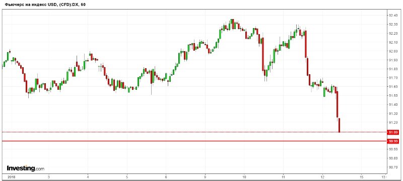 Індекс долара США в ході торгів в п’ятницю продовжує своє зниження, впритул наблизившись до мінімальної позначки 2017 року 90,99.