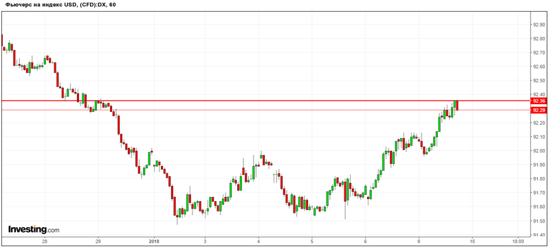На тлі даної статистики індекс долара США відступив від сесійної максимуму, біля позначки 92,36, але при цьому зберігає висхідну динаміку на оптимізмі учасників ринку щодо підвищення процентної ставки ФРС в березні й зниження попиту на активи безпеки.