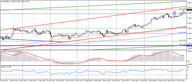 На «тонкому ринку» пара EUR/USD продовжила зміцнення, що було викликано загальним зниженням американця. В результаті, вчорашні очікування по оновленню рівня опору на 1.1950-60 виправдалися.
