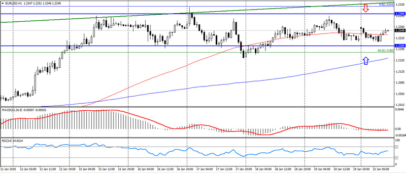 Після п’ятничних торгів, які закрилися невеликим зростанням американця, пара зберігає бічний тренд в діапазоні від 1.2200-1.2160 до 1.2300-1.2330. Незважаючи на збереження політичних ризиків по США, американець обмежується недавніми рівнями підтримки. Підтримку долару США надає позитивна динаміка держ. облігацій США і низька сприйнятливість ринку до даних щодо уряду США.