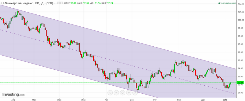 Графік індексу долара США. Поточна ціна – 92.30.