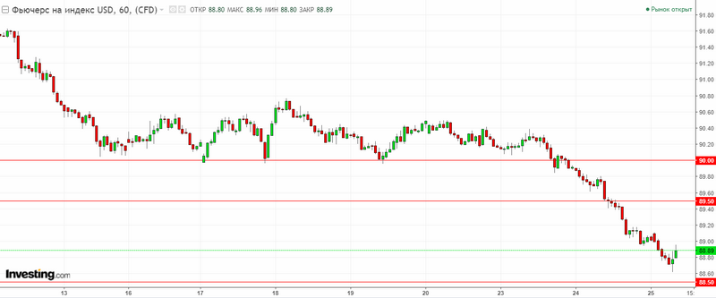 Графік індексу долара США. Поточна ціна – 88.90