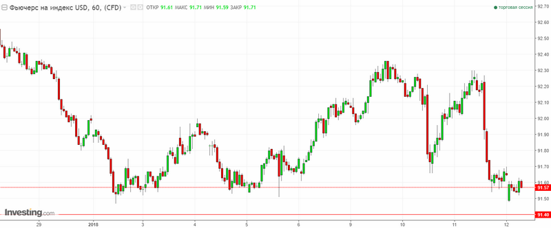 У свою чергу, американська валюта залишається під тиском проти основних конкурентів, що викликано збереженням оптимізму по євро і слабкими даними з виробництва в США. В результаті, індекс долара США залишається біля річних мінімумів, обмежуючись рівнем підтримки 91.50-40. І чекаючи даних по інфляції в США, які можуть змусити ринок вийти з фази консолідації.