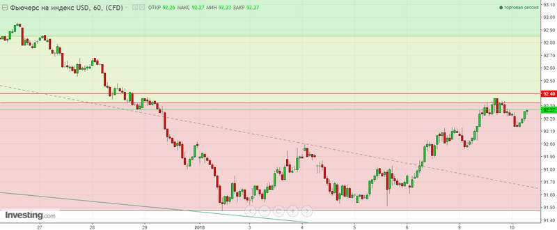В результаті, американська валюта продовжує торгуватися в плюсі проти основних конкурентів, отримуючи підтримку від зростання держ. облігацій США й збереження оптимізму щодо зростання процентних ставок в США. Так, індекс долара США продовжує торгуватися в висхідному тренді, обмежуючись вчорашнім максимумом.