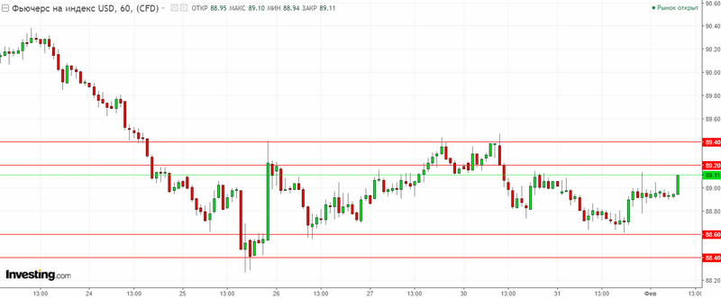 Графік індексу долара США. Поточна ціна – 89.10.