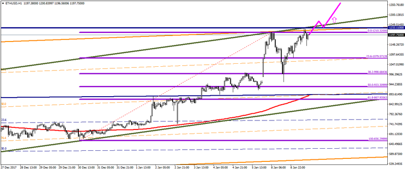 Технічний аналіз: Після вчорашнього поновлення максимальної позначки до рівня $ 1 211,33, ціна ефіру різко знизилася, відпрацювавши при цьому істотний корекційний рівень 38,2 по Фібоначчі на Н1, що дало можливість сьогодні в черговий раз оновити історичний максимум. На даний момент, основним опором виступає позначка $ 1 210,00, в тому випадку якщо ціні вдасться закріпитися вище даної позначки, варто очікувати подальшого зростання ціни криптовалюти. Також, читайте мою статтю «Криптовалюта світу. Ethereum (ефіріум). »