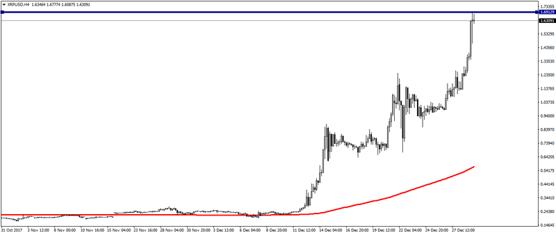 У той час як більшість криптовалют провели останній тиждень грудня у флеті, що не демонструючи значної волатильності, Ripple подорожчав більш ніж на 80%, досягнувши максимальної позначки на рівні $ 1,69129 за монету. Ринкова капіталізація Ripple досягла позначки $ 71,48 млдр., що практично впритул наблизило криптовалюту до найближчого конкурента Ефіріум, який займає другу позицію на ринку з ринковою капіталізацією $ 73,26 млдр.
