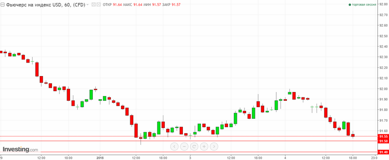 Але, незважаючи на існуючу негативну динаміку, подальше зниження американця буде обмежуватися значною перепроданостю і очікуванням даних по зайнятості в США. Тому, значущими рівнями підтримки для індексу долара США залишаються позначки: 91.500 та 91.400.