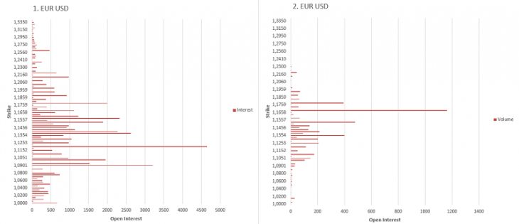 EUR USD Загальний розподіл інтересів (1) і обсягів (2)