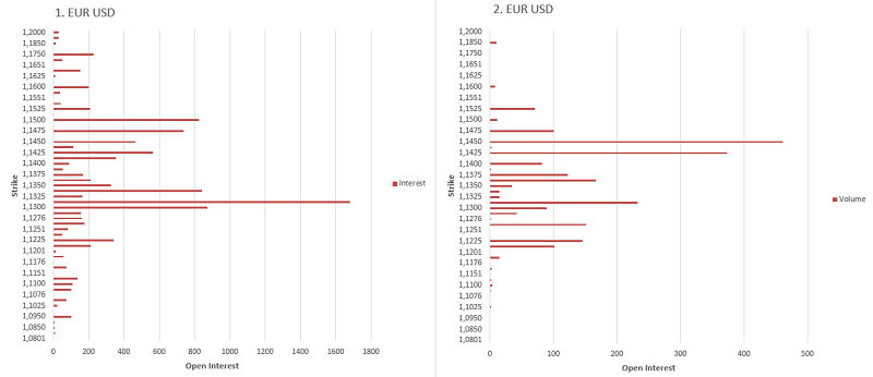 EUR USD Загальний розподіл інтересів (1) і обсягів (2)