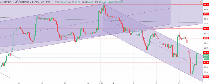 At the same time, by the end of the day, the US dollar index managed to adjust partially for a break from the level of 96.20. As a result, the US dollar index returned to significant resistance 96.70, which is the upper limit of the downward channel and indicates the possibility of a resumption of decline.