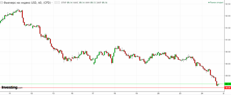 Graph of the US dollar index. Current price – 89.20