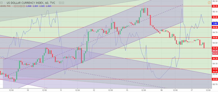 The US dollar index keeps a downward trend, limited to the support level of 94.40.